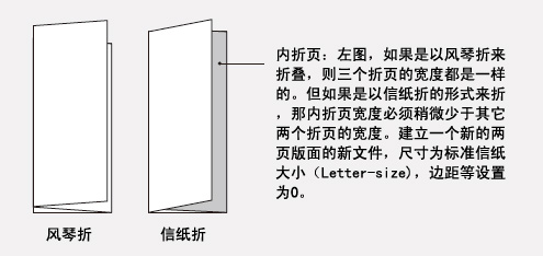 這本小冊子有三個主要區域,分別為封面折頁,封底折頁,內折頁及由三個折頁構成的內展開頁。封面折頁中,我們采用一個方塊來應用標題,另外兩個來應用圖片。