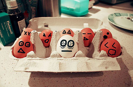 大家早餐都吃什么呢?我每天的早餐中必有一個(gè)雞蛋。雞蛋不僅營養(yǎng)價(jià)值高,還有美容的效果。手中拿著一個(gè)雞蛋看著他們圓圓的身材忽然覺得十分有趣,拿起手中的筆給他們畫點(diǎn)“蛋妝”吧,看著這么可愛的小家伙們,怎么忍心吃掉他們呢?